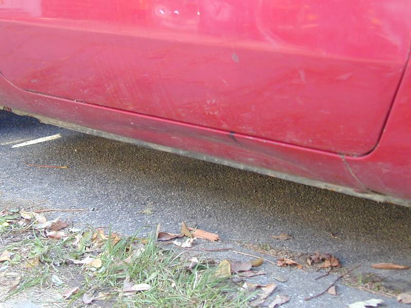 This is the only work to be done on either exterior rocker panels. The driver's side has been pushed in, possibly by running against a parking lot curb.